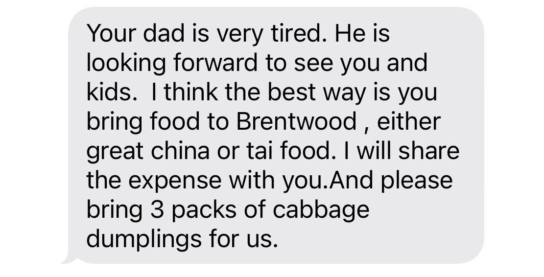 Since I was a child, my mother has in large part communicated on behalf of my father, who usually prefers silence; when he does speak up, it is usually to disastrous effect, so it had always occurred to us that this was the best way. My father has Chronic Obstructive Pulmonary Disease (COPD) from thirty-years of smoking a pack or more of cigarettes a day, and is too weak for most things. A trip to the toilet will wind him for the afternoon. Plans to go to a restaurant invariably end with me bringing food from one of his favorite Thai restaurants. The frazzled trips are worth it for me, so that my kids may have a chance to remember him, and for him to have access to his grandsons, his favorite people in the world, in these later stages of his life. Everyone seems to be happy, even my mother, who briefly forgets to worry if the frozen dumplings thawed too much in the car, as we witness the rarest of sights. My father smiling.